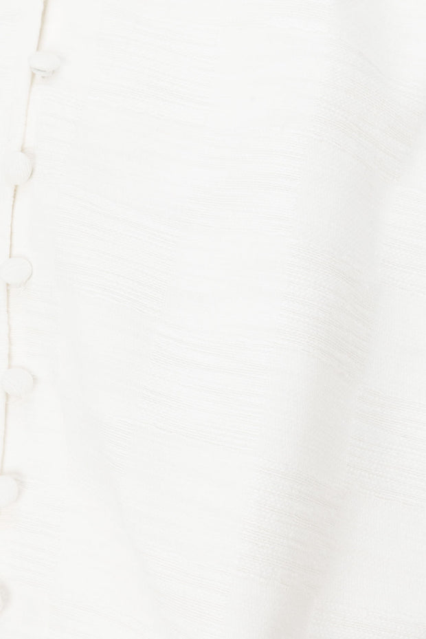 *BACK IN STOCK*Β Wear it as a set or style it with jeans, theΒ Aaliyah Top is made from a super cute natural cotton blend self check fabric in off white. It features a button loop opening at front, thin adjustable straps and an a-line hem. Get the set with theΒ Aaliyah Skirt! Designed exclusively by Sabo.