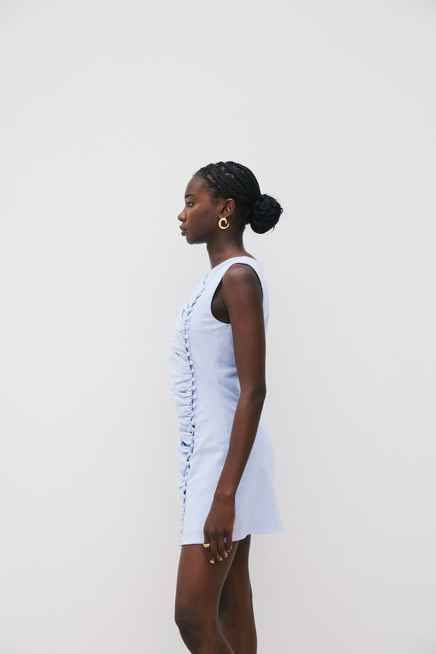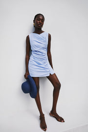 Designed with a silhouette to flatter, theΒ Alchemy Dress is made from a high quality cotton slub fabric in a soft blue hue. It features a high neckline, wide sleeves, covered button design detail at side with gathering across front and an a-line mini hem. Style your look with the Tamia Heels! Designed exclusively by Sabo.