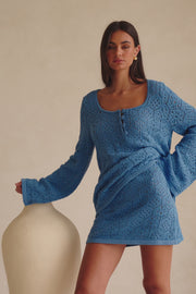 *BACK IN STOCK*Β Β Wear it as a set or pair it back with the Ellamay Top, theΒ Alivia Skirt is made from a natural cotton diamond knit in a blue hue. It is a high waisted style featuring a thin elastic waist, bind hem and mini length. Get the look with the Alivia Top! Designed exclusively by Sabo.