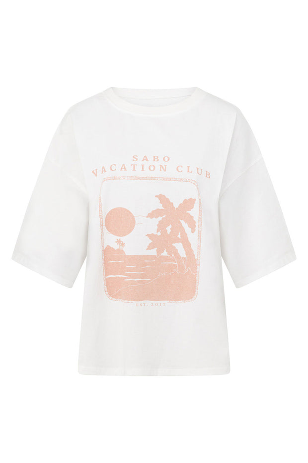 A relaxed style for an effortless look! The Britta Top is made from a high quality heavy cotton fabric in white. It is an oversized style featuring drop shoulders, boxy sleeves, rounded neckline, longline hem and vintage inspired graphic. Designed exclusively by Sabo.