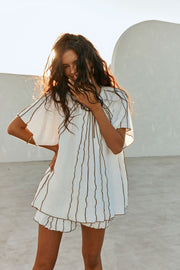 Super stylish and easy-to-wear! TheΒ Ciri Shorts are made from a natural cotton fabric and feature a thin elasticated high waist with contrast tan drawstring and contrast stitch panel and trim contour details. Get the look with the Ciri Top. Designed exclusively by Sabo.