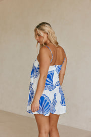 Pair with heels for a cute long lunch look, theΒ Danna Playsuit is made from a natural linen cotton blend fabric with our exclusive Seashell print. It features a straight neckline, adjustable bind straps, boxy fit and mini hem with pleated shorts. Dress it up with the Dia Heels. Designed exclusively by Sabo.