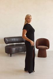 A less-is-more design in a contouring rib fabric! TheΒ Gemini Dress features raw edging, cap style sleeve, body hugging fit and maxi skirt with split at thigh. Keep it casual with chunky slides or dress it up with heels. Designed exclusively by Sabo.Β