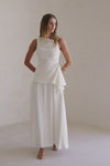 An elegant style for your next event, theΒ Hailey Skirt is made from a matte silky fabric in white. It is a high waisted style featuring godet details at waist and a full maxi skirt. Get the look with the Hailey Top! Designed exclusively by Sabo.