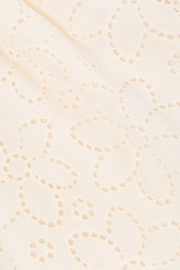 Our favourite casual set now in a vintage inspired natural cotton broderie fabric! TheΒ Hazel Top features thin rouleau straps, straight elasticated neckline with functional tie detail, relaxed babydoll fit and a frill panel across hem. Get the set with the Hazel Shorts! Designed exclusively by Sabo.
