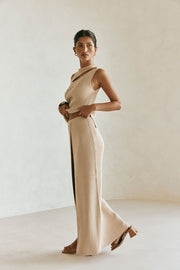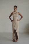 Dress it up and wear it as a set or pair it back with a tee! TheΒ Indie Skirt is made from a high quality ribbed cotton fabric in a tan hue. It is a high waisted style featuring an asymmetric wrap detail with split and maxi hem. Pair with the Indie Top! Designed exclusively by Sabo.