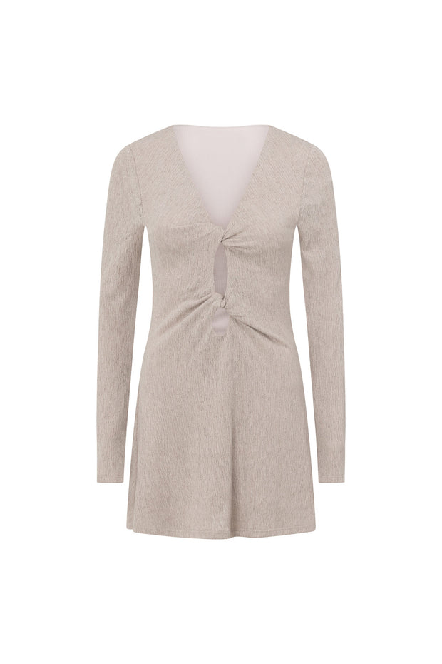 Simple, yet show stopping! TheΒ Ivy Dress is made from a stunning textured fabric in a stone hue. It features full length sleeves, V neckline, cutout and twist details at centre bodice and a mini skirt. Dress it up with heels for date night! Designed exclusively by Sabo.