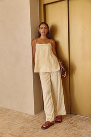 A stunning piece from our SABO x Kayla Boyd collection, made from a luxurious silky fabric in a buttery yellow hue, theΒ Kehlani Pants feature a thin elastic waist with drawstring and relaxed wide leg fit. Get the look with the Kehlani Top. Designed exclusively by Sabo.