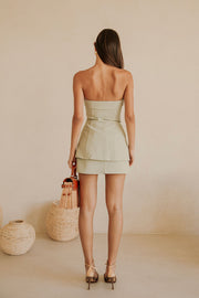 Wear it as a set or pair it with an oversized button up shirt, theΒ Lavara Skirt is made from a suiting fabric in a tan hue. It is a high waisted style featuring a wrap panel at front with covered button closure and mini hem. Get the set with the Lavara Top and Dia Heels! Designed exclusively by Sabo.