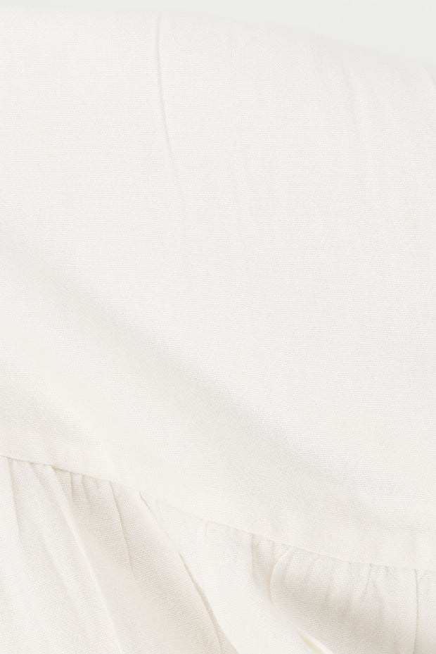A super cute easy-to-wear SABO signature style, theΒ Luna Top is made from a natural cotton ramie blend fabric in white. It is a relaxed style featuring a collar, covered buttons at centre front, drop shoulders, boxy sleeves and a flouncy gathered panel across hem. Get the look with the Luna Shorts and Tiera Platform Sandals! Designed exclusively by Sabo.