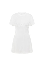 The perfect look to add your personal styling touches to! TheΒ Mali Dress is made from a structured ribbed fabric in white and features a high neckline, short sleeves, gathered bodice, fitted through the body and a mini skirt. Designed exclusively by Sabo.