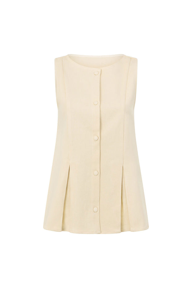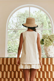 A super chic set, theΒ Mari Top is made from a high quality cotton blend fabric in cream. It features a wide longline hem with godet details, covered button opening and wide straps. Get the set with theΒ Mari Skirt! Designed exclusively by Sabo.
