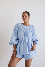 *THIS IS A SAMPLE* I am a one off Sabo sample of the Akel Top - Blue. As I was worn in a photo shoot, I have light soiling inside my neckline. I cannot be returned, so I'm all yours to love and wear as your very own.