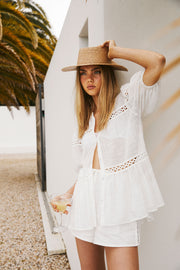 *THIS IS A SAMPLE* I am a one off Sabo sample of the Lacey Top. I have a brown mark on my top button and my size tag has unstitched. I cannot be returned, so I'm all yours to love and wear as your very own.