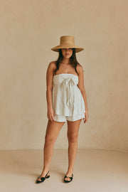 *THIS IS A SAMPLE* I am a one off Sabo sample of the Maeve Playsuit. I have a small, blue mark on my front bottom half. I cannot be returned, so I'm all yours to love and wear as your very own.