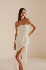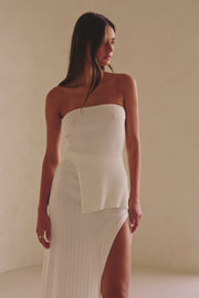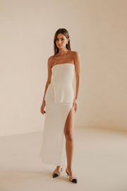 Dress it up and wear it as a set or pair it back with denim! TheΒ Saria Top is made from a textured mini pleated fabric in white and features a strapless neckline and split detail at hem. Get the look with the Saria Skirt and Bobbi Heels! Designed exclusively by Sabo.