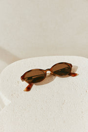 Accessorise your look with the model-off-dutyΒ Totem Sunglasses, featuring brown oval frames with brown lenses and gold toned arms.Β